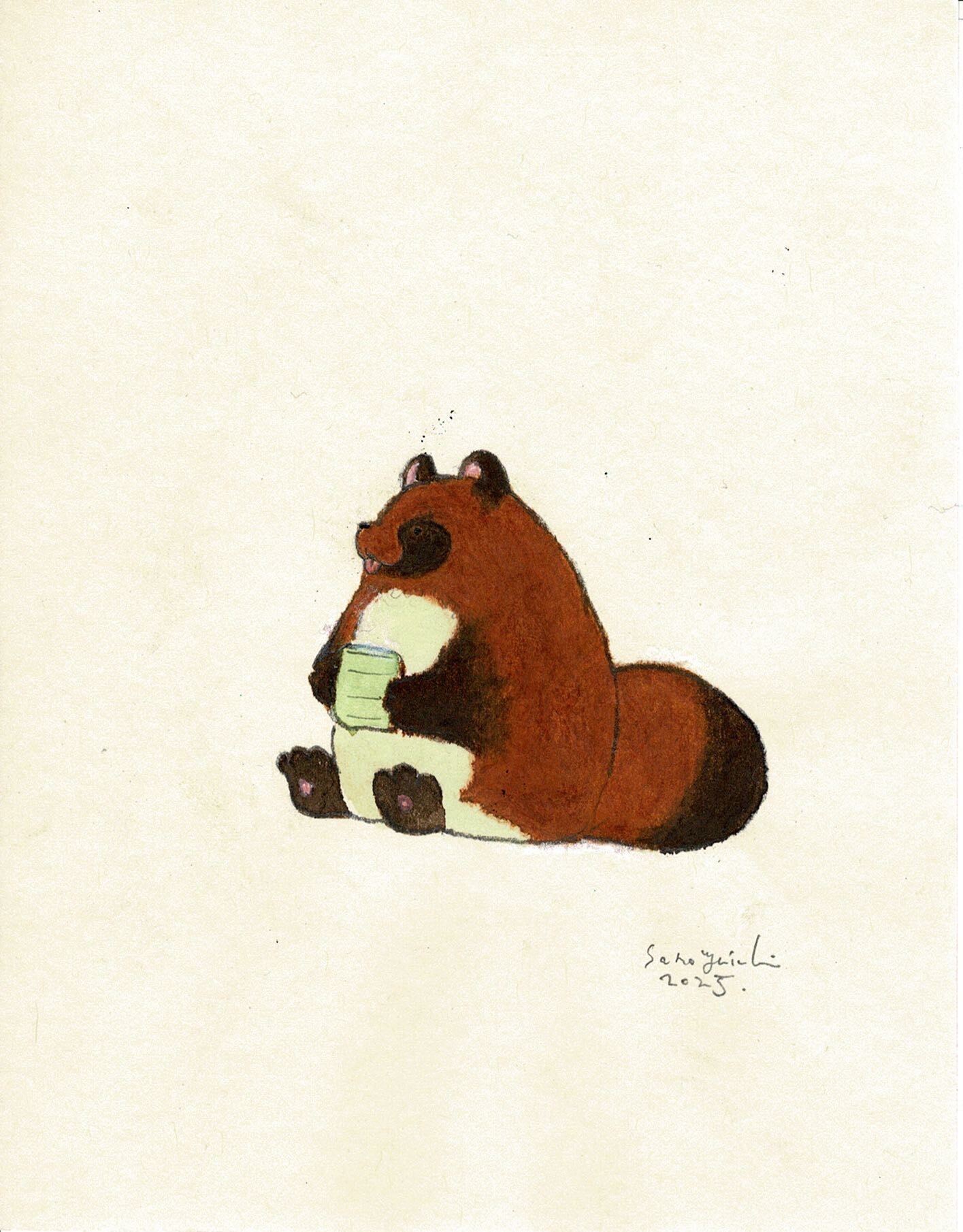 サイズ 145×120mm たぬきの原画のみの商品です。 額装してお届けをご希望の場合は 【額縁とマット】セットを 合わせてお求めくださいませ。