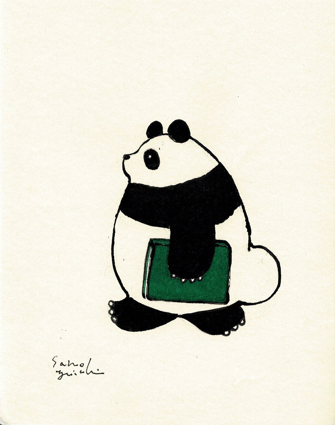 散歩に本を持ってゆくパンダ