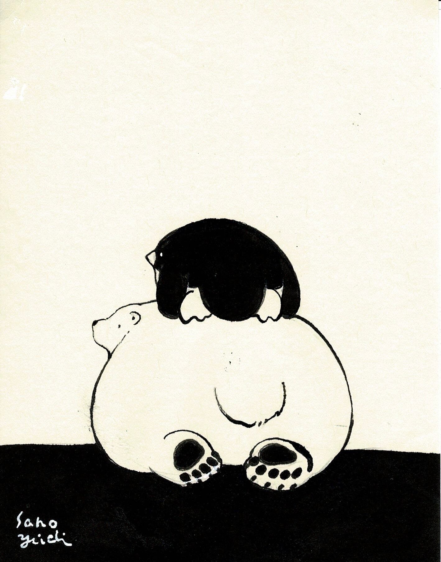 まったりするシロクマとペンギン