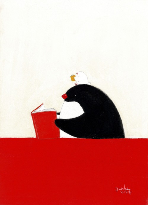 【複製原画】毎日少しだけ本をよむ。